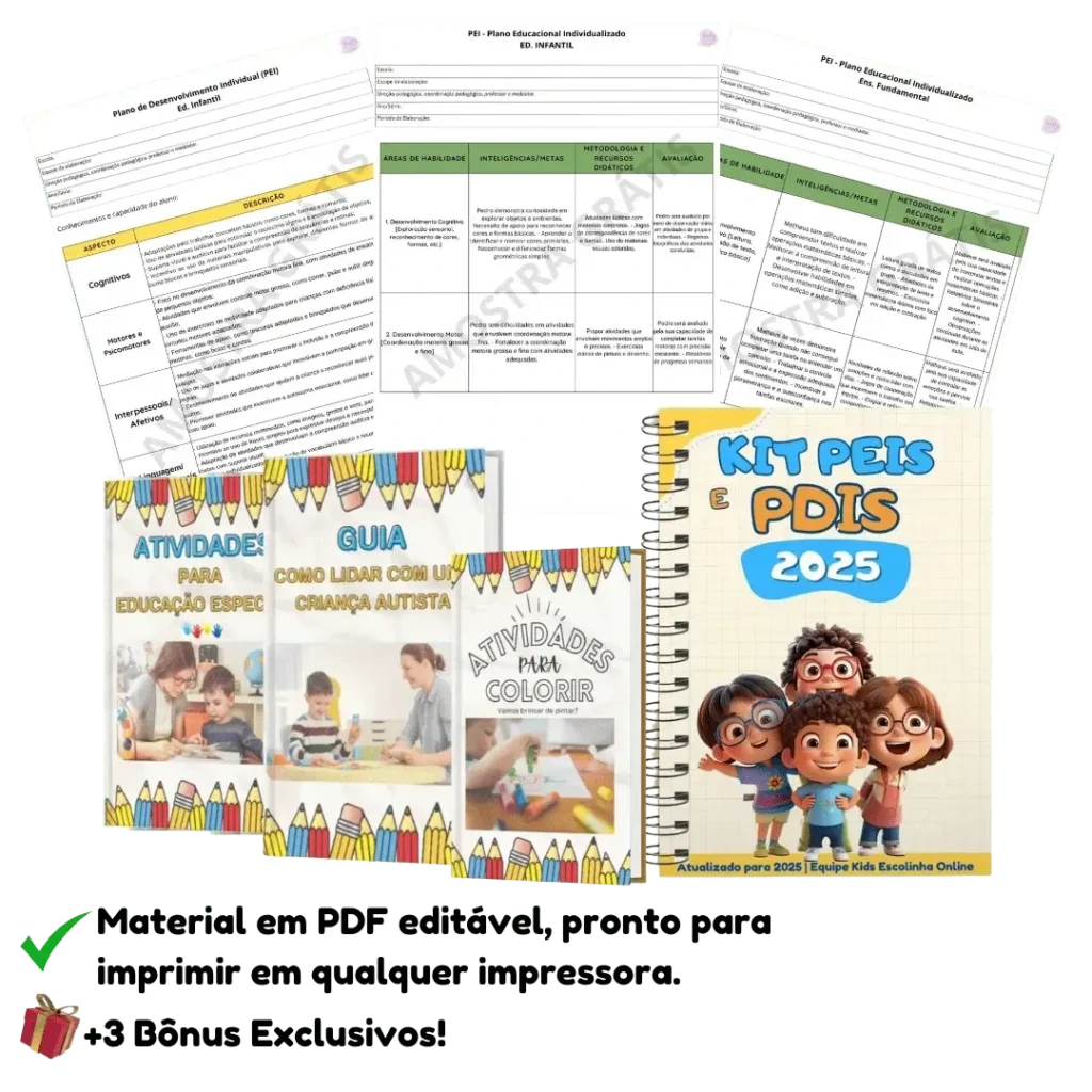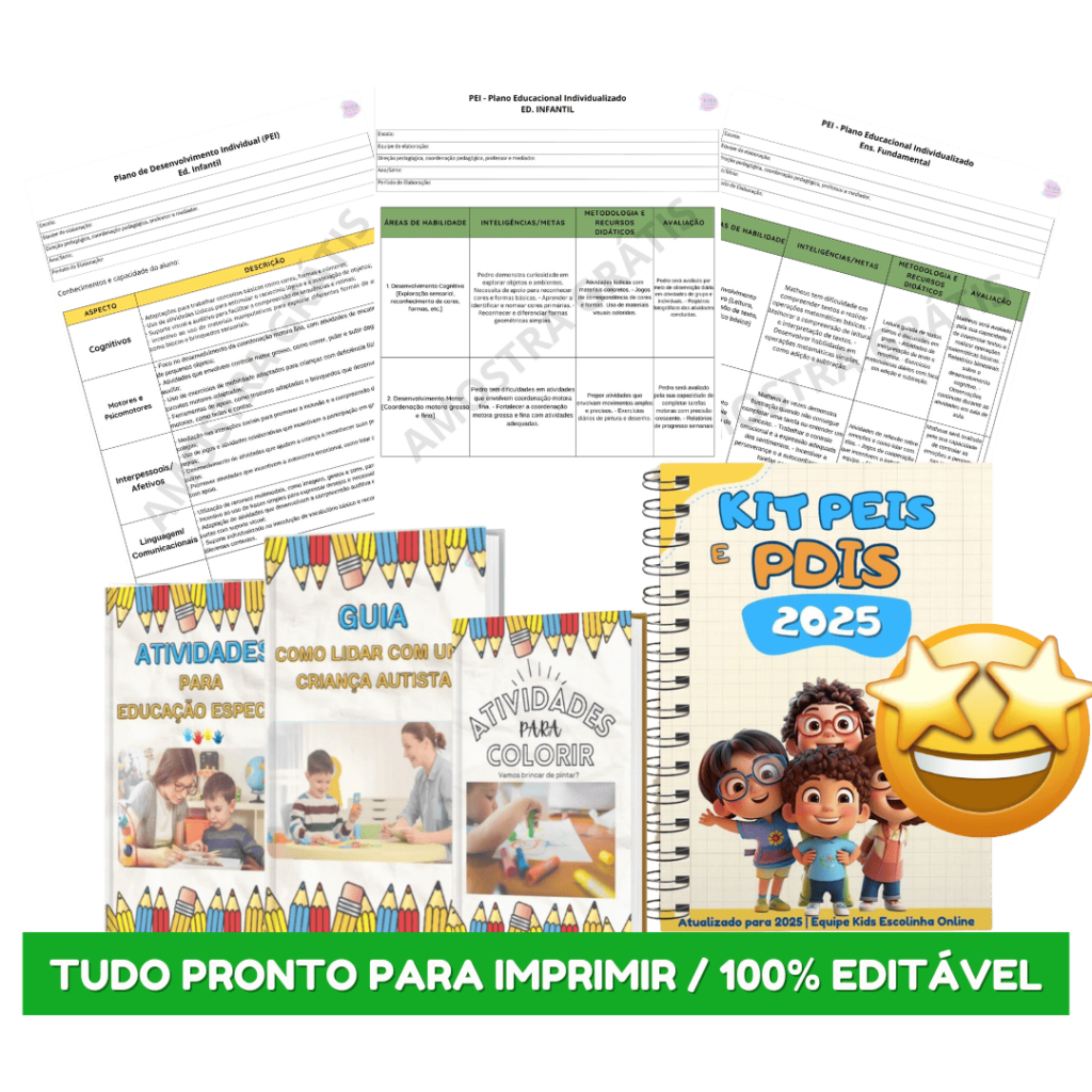 Pensando em você, professor(a), desenvolvemos um Kit completo com mais de 150 modelos de PEIs e PDIs 📝, prontos para personalizar e atender às necessidades específicas de seus alunos.